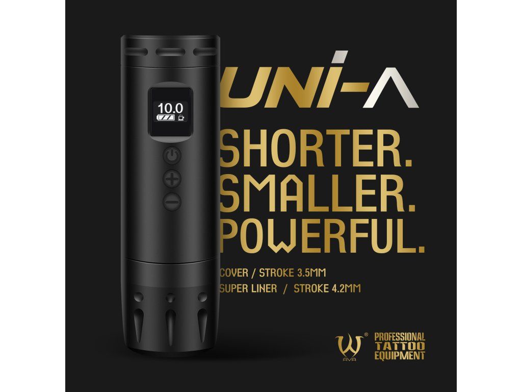 Die AVA UNI A in Grau mit 3,5 mm Hub ist eine leichte, kabellose Tattoomaschine mit kurzem Gehäuse und übersichtlicher Bedienung. Sie eignet sich für Tätowierer, die eine mobile Lösung ohne unnötig robustes Design wünschen.