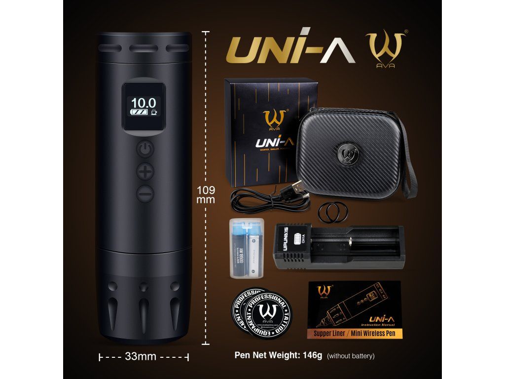 Das AVA UNI A im grünen Design mit einer Strichstärke von 4,2 mm vereint kompakte Größe, geringes Gewicht und praktischen Akkubetrieb. Es eignet sich für Tätowierer, die ein mobiles Gerät mit besonders hoher Reaktionsgeschwindigkeit suchen.