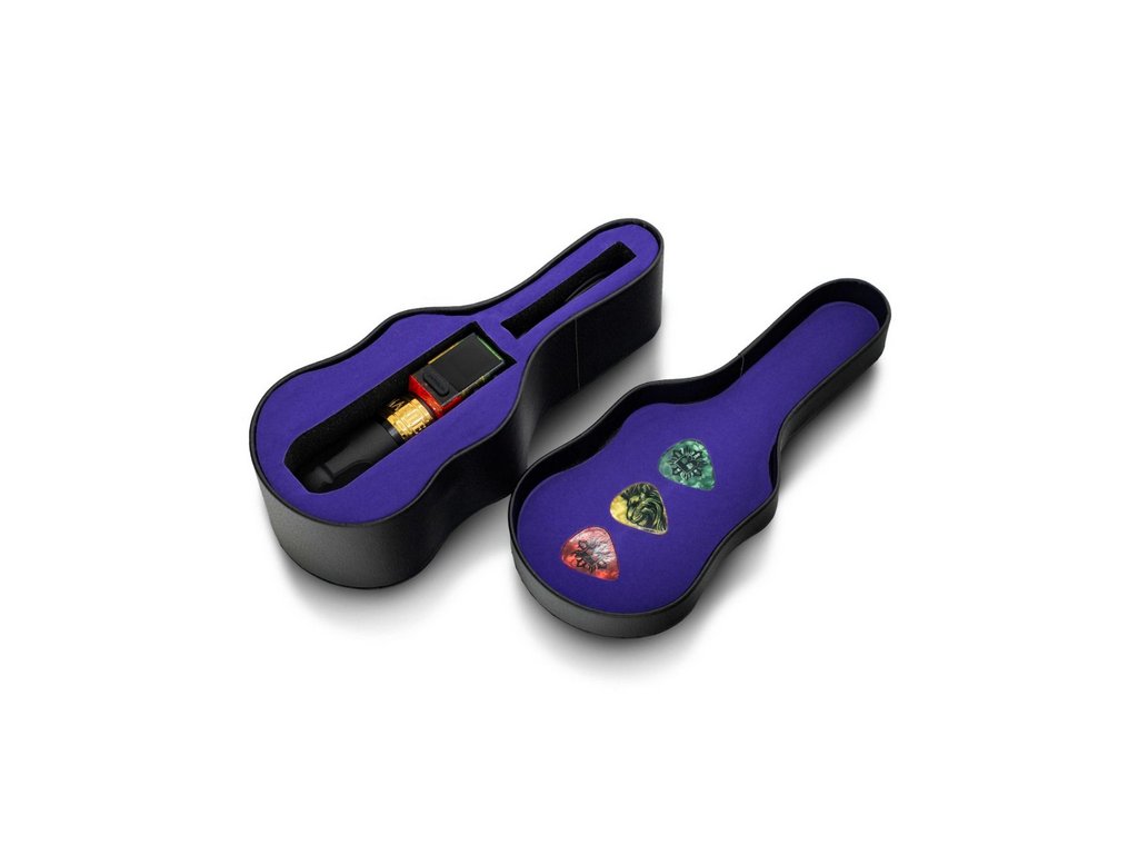 Aufbewahrungsbox für das Gerät in Form eines Gitarrenkoffers