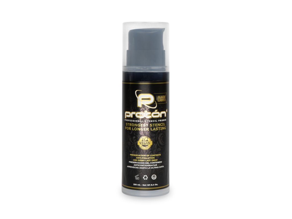Proton Professional Stencil Primer wird in Spanien nach den strengsten Hygienestandards hergestellt und basiert auf der kolumbianischen Meisterrezeptur. Es enthält die besten verfügbaren Inhaltsstoffe, die eine präzise und saubere Übertragung des Stencils mit perfekten Details gewährleisten.