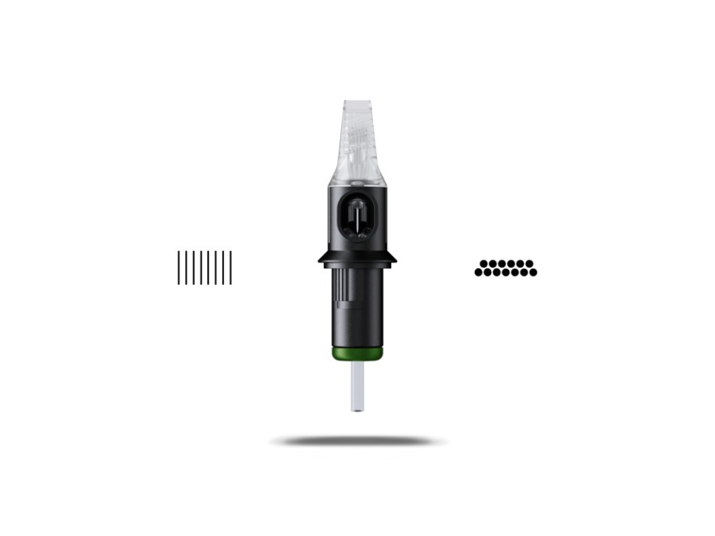 Die neueste Patrone vom Erfinder der Patronen, German Cheyenne In der Spitze der Patrone befindet sich eine Kapillare mit einem Reservoir. Während der Befüllung nehmen unsere Kapillarpatronen mehr Tinte auf als herkömmliche Patronen. Das Ergebnis ist ein bis zu 10-mal längerer Tintenfluss, bevor Sie die Spitze erneut in Tinte tauchen müssen. Die Vermischung der Tinte in der Patrone und die vollständige Reinigung mit Wasser sind weiterhin gewährleistet. Die verbesserte Nadelführung ermöglicht ultrapräzises Arbeiten in jeder Richtung. Kapillarpatronen sorgen dafür, dass die Tinte gleichmäßig auf alle Nadeln verteilt wird, selbst bei großen Größen wie der 15 Magnum. Dadurch wird die tätowierte Fläche gleichmäßig, zuverlässig und vor allem schneller gefüllt, was für den Kunden weniger Hautschäden bedeutet. Kapillartintenreservoir für bis zu 10-mal längeren Tintenfluss Verbesserte Nadelführung für ultrapräzises, omnidirektionales Arbeiten Gleichmäßige Tintenverteilung über alle Einzelnadeln für bessere Tätowierergebnisse und weniger Hautschäden 100%ige Qualitätskontrolle Farbige Kappen zur einfachen Identifizierung der Patronenkonfiguration