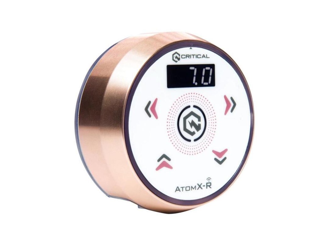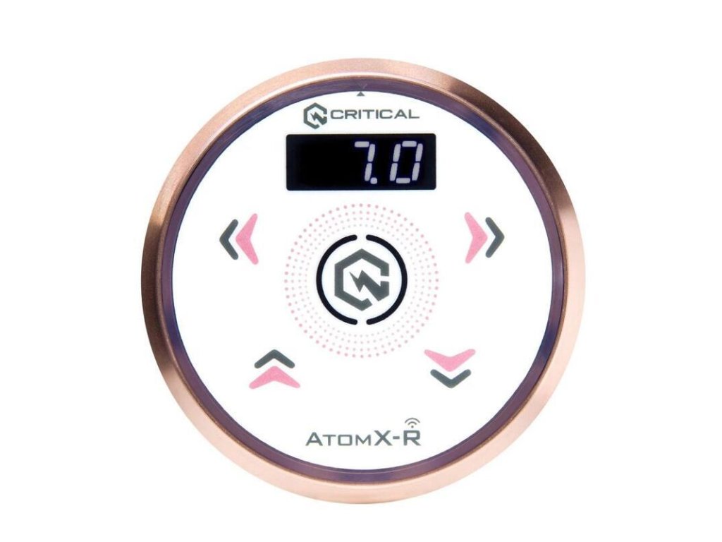 Der AtomX-R verfügt über die gleichen großartigen Funktionen wie der ursprüngliche AtomX und bietet zusätzlich folgende Features: 1. zusätzliche Möglichkeit der drahtlosen Synchronisation mit dem CXP19-Fußschalter - weniger Kabel für ein sauberes Setup. 2. Zwei Ausgänge für den Anschluss mehrerer Maschinen 3. Verbessertes Overlay-Design für eine verbesserte Benutzeroberfläche. AtomX-R ist in drei aufregenden Designs erhältlich: Schwarz, Roségold/Weiß und Roségold/Schwarz. Merkmale: Doppelter Ausgang für Multi-Maschinen-Presets Kompatibilität mit dem kabellosen CXP19-Pedal Eingebaute Neodym-Magnete für starken Halt auf Metalloberflächen Jumpstart-fähig für schwer zu startende Maschinen wie die Cheyenne Thunder Nichtflüchtiger Speicher (enthält Presets, (einfache Umschaltung mit einer Taste) - kontinuierliche Auslösung oder bei Betätigung des Pedals Pedalüberbrückungstaste (kein Fußschalter erforderlich, wenn der kontinuierliche Modus nicht ausgelöst wird) Spezifikationen: Integrierter Kurzschlussschutz Spitzeneinschaltstrom 6 A, tatsächlicher Effektivstrom 3 A Dauerstrom Universaleingang 110-240VAC 50/60Hz 2 Jahre Vollgarantie Made in USA Konformitätszertifikat für die Tschechische Republik und die Slowakei enthalten. Die Konformitätsbescheinigung für die Tschechische Republik und die Slowakei liegt bei.