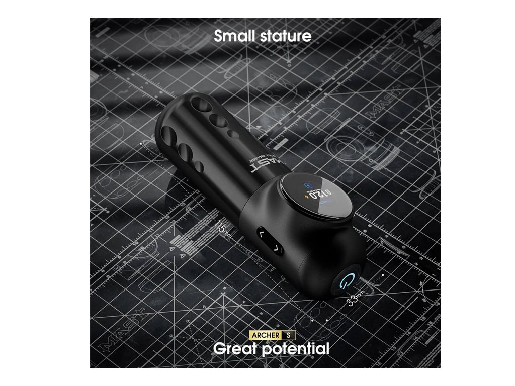 Für das Tätowieren entwickelt: Das Design lässt sich leicht herausnehmen und austauschen, was einen einfachen Wechsel des Akkumoduls ermöglicht. Leistungsstarker Motor, komfortabler Griff, CE/FCC-Zertifizierung für den internationalen Einsatz.