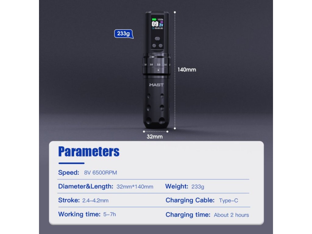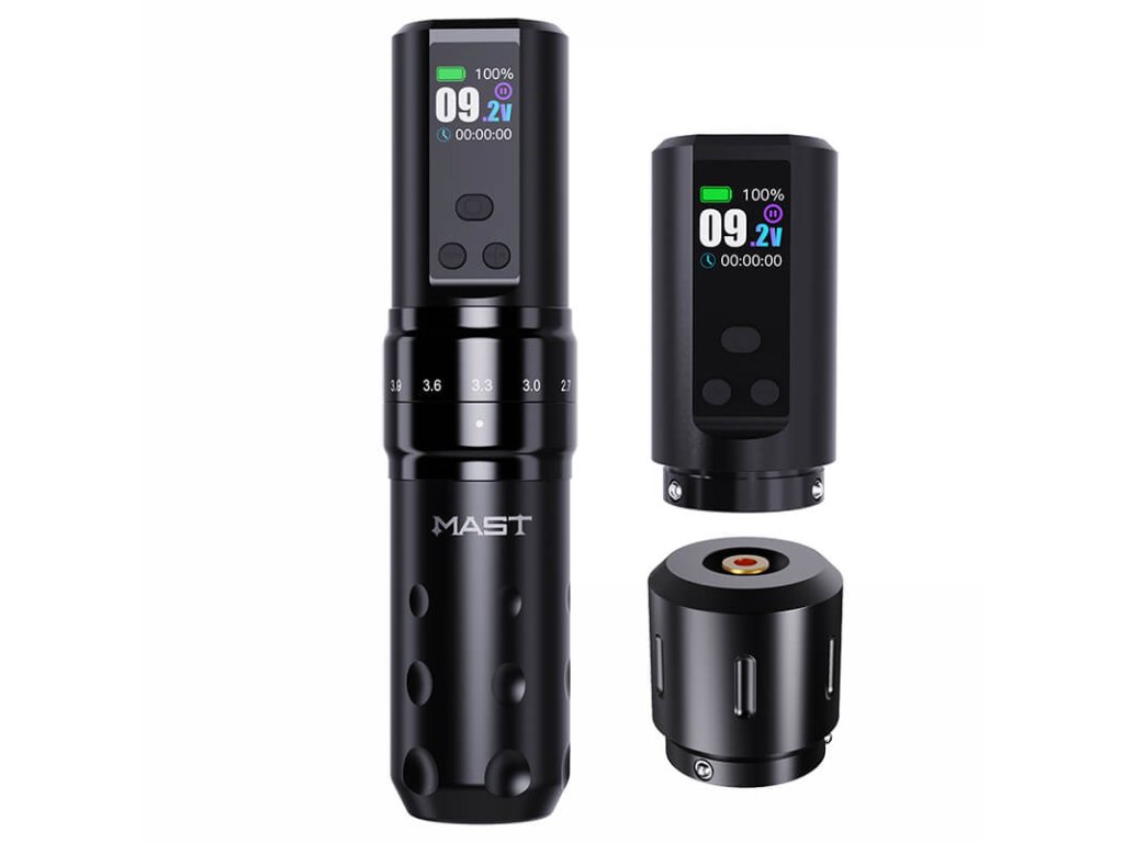 Die Mast Fold 2 Pro ist ein modulares, kabelloses System, das für den professionellen Einsatz in Tattoo-Studios entwickelt wurde. Die Maschine vereint mechanische Flexibilität, stabile Leistung und einfache Bedienung ohne externe Stromversorgung.