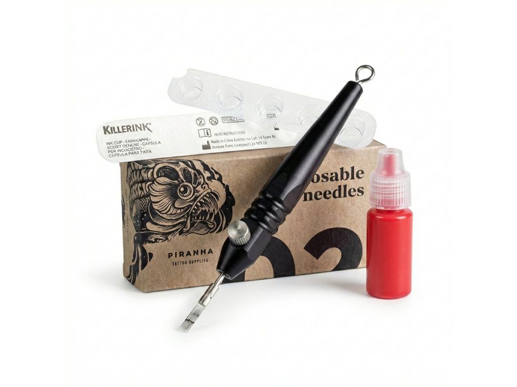 Handpoke tool. 5 Stk. Piranha 9 Magnum-Nadeln. 3 ml Farbe.