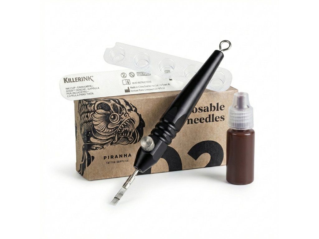 Handpoke tool. 5 Stk. Piranha 9 Magnum-Nadeln. 3 ml Farbe.