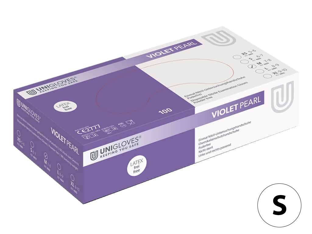 Handschuhe Unigloves Nitril S Violet Pearl ohne Latex und Puder, 100St.