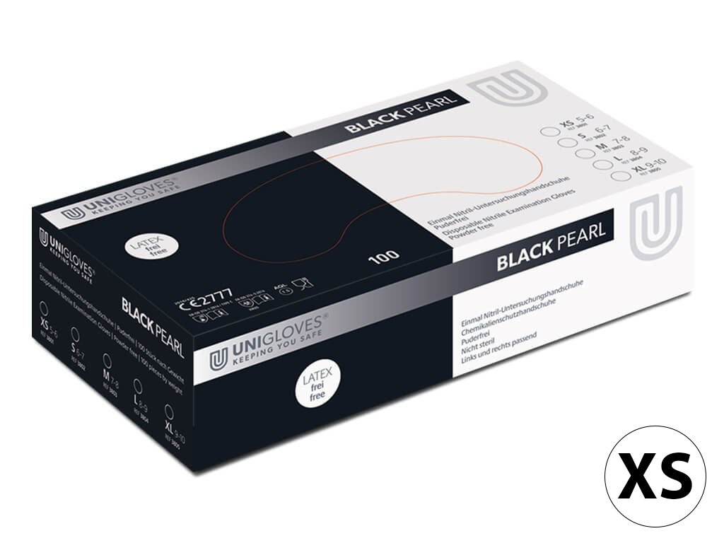 Handschuhe Unigloves Nitril XS Black Pearl ohne Latex und Puder, 100 St.