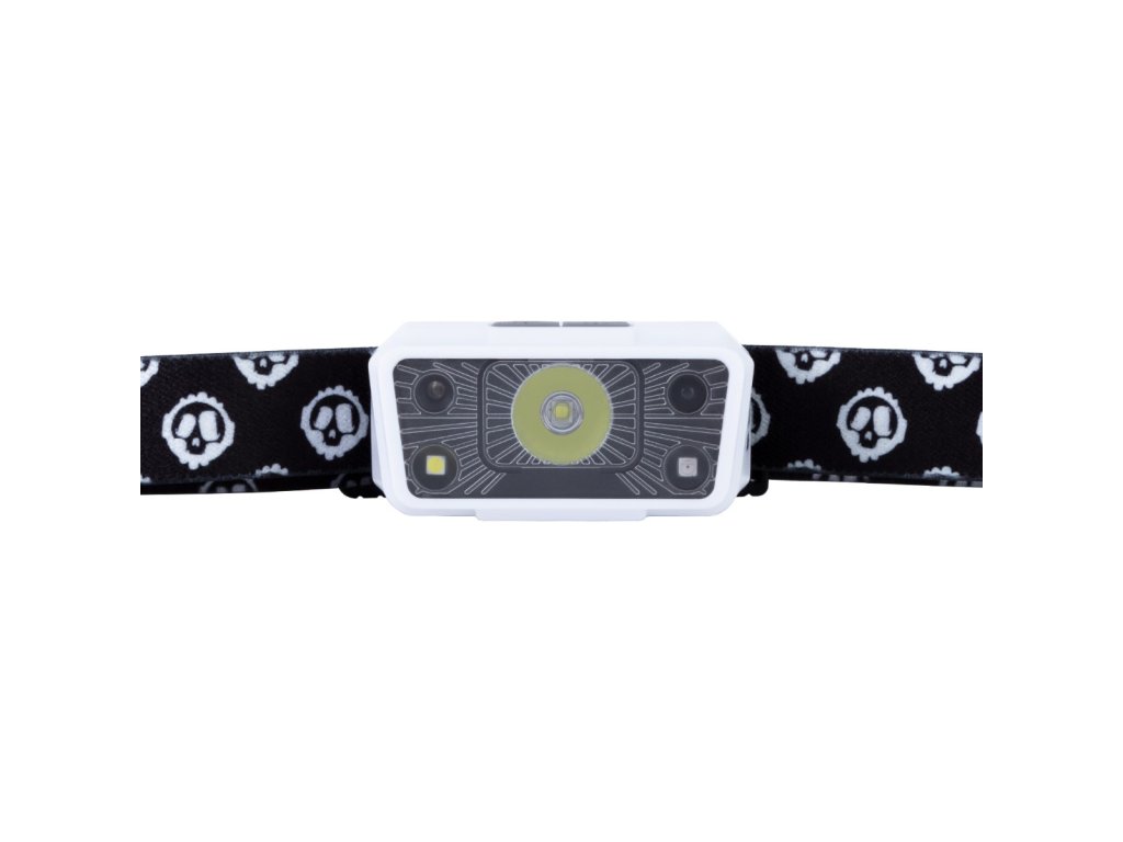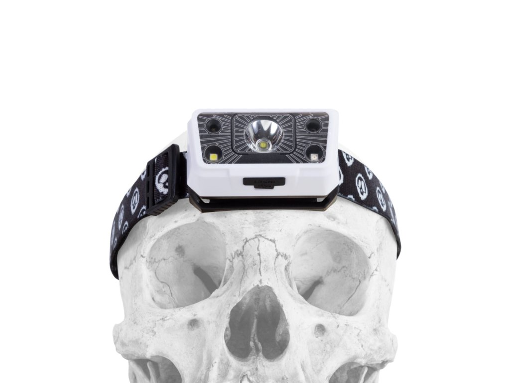 Der integrierte Bewegungssensor ermöglicht das Ein- und Ausschalten durch Winken mit der Hand vor der Stirnlampe, was die Hygiene beim Arbeiten mit Handschuhen erhöht. Die seitlichen LED-Anzeigen zeigen den Akkustand bei 30 %, 60 % und 100 % an und signalisieren den Ladevorgang durch Blinken.