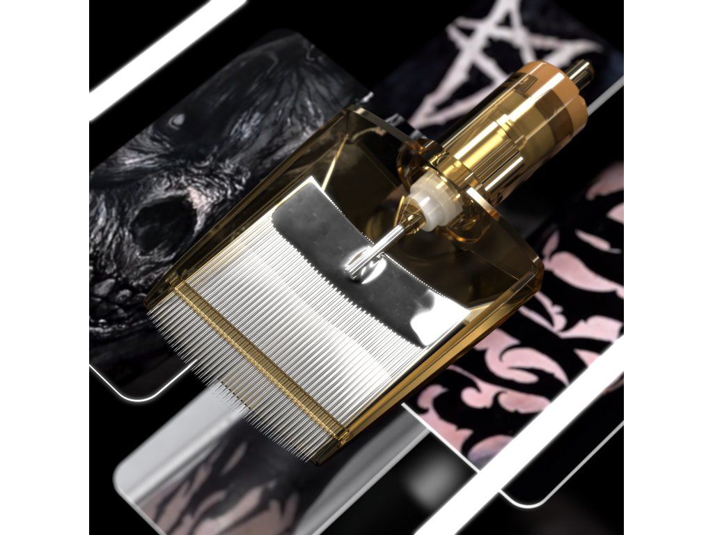 Die Soft Edge Magnum-Konfiguration ermöglicht eine gleichmäßigere Farbverteilung in der Haut ohne scharfe Kanten, was insbesondere bei Blackwork-Flächen und großen Schattierungen entscheidend ist. Hier stoßen herkömmliche Magnum-Systeme an ihre Grenzen. Sie sind entweder langsam oder weisen eine ungleichmäßige Qualität auf. Die Combat-Serie hingegen basiert auf dem gegenteiligen Prinzip: Geschwindigkeit, Stabilität und Vorhersagbarkeit.