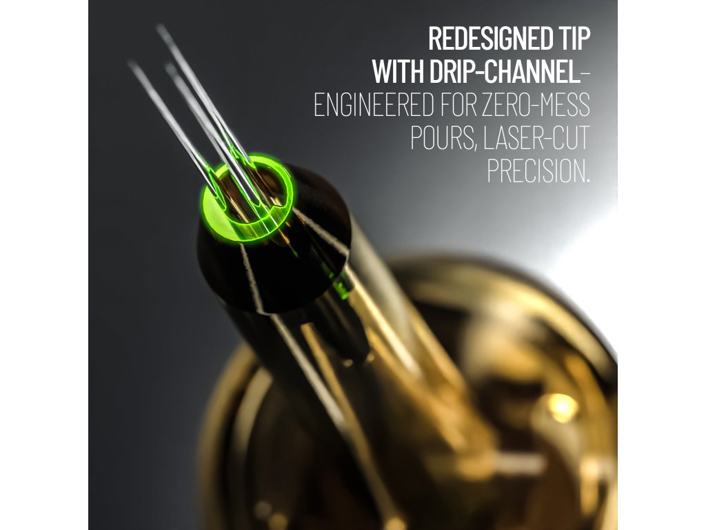 Das Hybrid-Design mit verbesserter Stabilisierung gewährleistet maximale Kontrolle über jeden Strich und einen gleichmäßigen Tintenfluss. Die speziell entwickelte Tropfkanalspitze leitet überschüssige Tinte ab und ermöglicht präzises, spritzfreies Arbeiten.