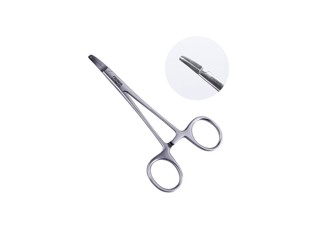 Zange mit spezieller Öse zum Festhalten der subkutanen Verankerung des Mikrodermals während des Schmuckwechsels