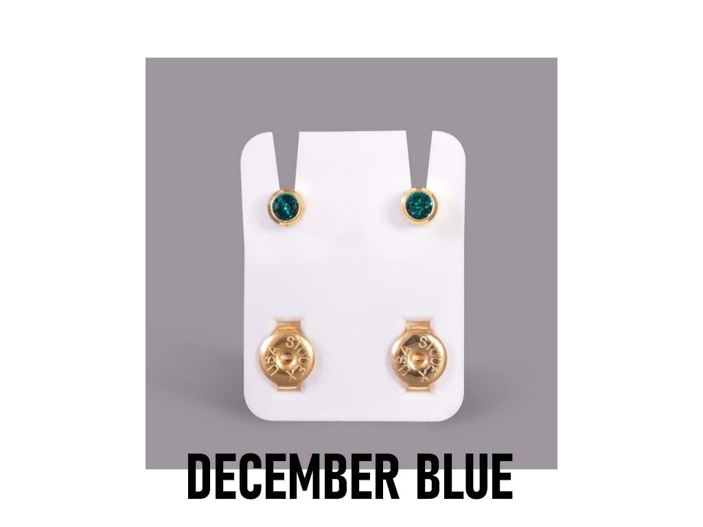 Ohrringe für Piercing Set Dezember Blauer Zirkon - blau STUDEX Plus 12Paar - gold Farbe