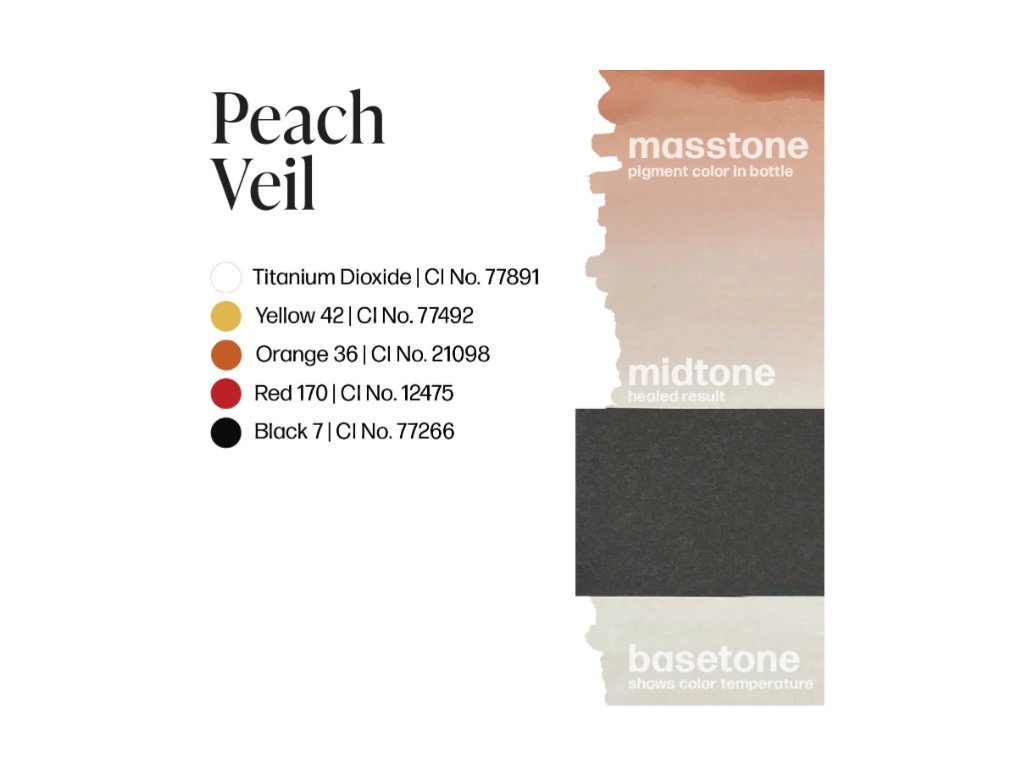 Ein heller, natürlicher, pfirsichfarbener, warmer Lippenton mit hoher Deckkraft und warmer Basis – anorganisch und organisch