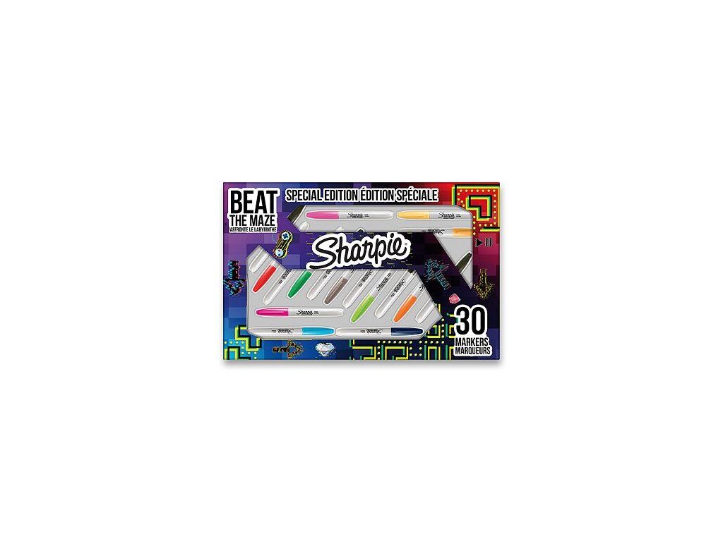 Sharpie Maze ist ein Set aus 30 Permanentmarkern mit feiner Rundspitze zum Beschriften, Kennzeichnen und Organisieren des Arbeitsplatzes. Es eignet sich überall dort, wo Material, Verpackungen oder Equipment schnell und gut lesbar markiert werden müssen.