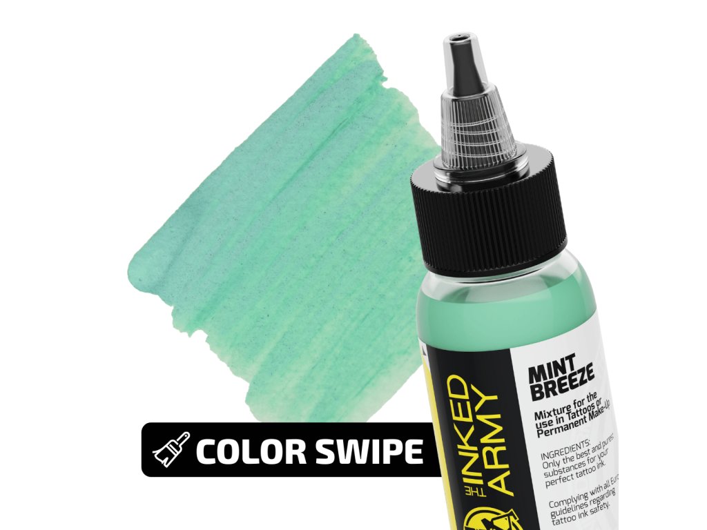 THE INKED ARMY Mint Breeze ist ein leuchtender Mintgrünton aus einer Serie professioneller Tattoo-Farben aus Deutschland. Er bietet einen frischen, kräftigen Farbton, der sowohl bei großflächigen als auch bei detaillierten Farbelementen besonders gut zur Geltung kommt.