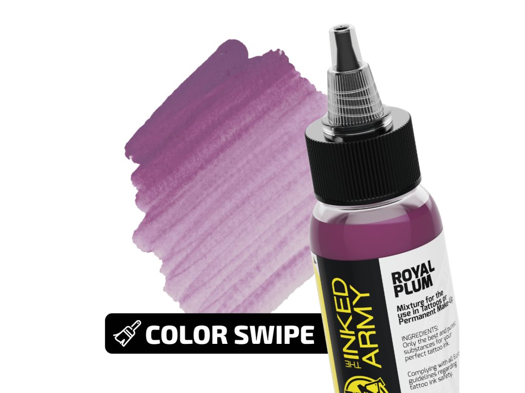 THE INKED ARMY Royal Plum ist eine intensive Pflaumenlila aus einer Serie professioneller Tattoo-Farben aus Deutschland. Es bietet einen satten, vollen Farbton, mit dem Sie Tiefe, Kontrast und dramatische Effekte in Farbmotiven können.