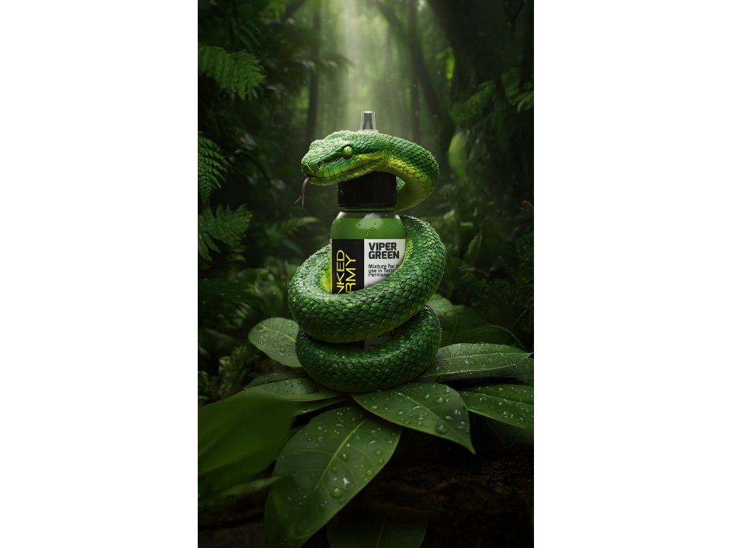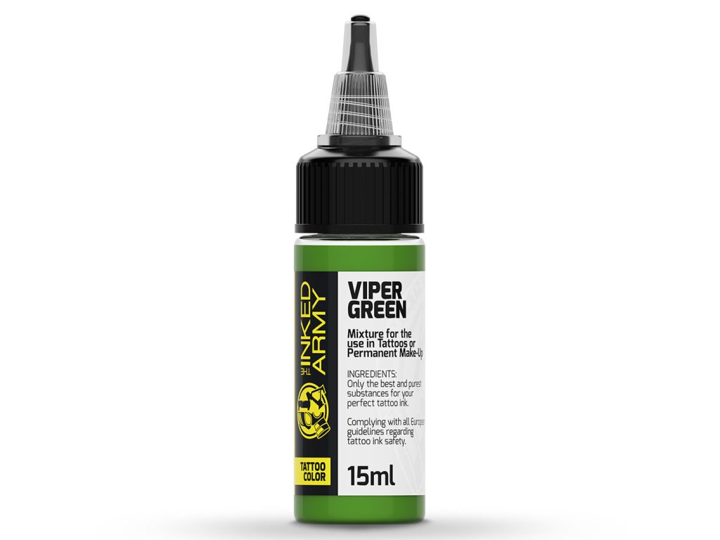THE INKED ARMY Viper Green ist ein kräftiges, sattes Grün, inspiriert von der Farbe von Schlangenhaut. Es bietet einen starken, karen Farbton der Motiven Energie und leuchtende Farbkontraste.