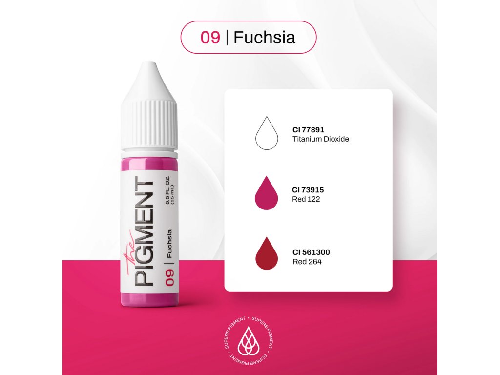 Pigment The Pigment 09 Fuchsia kombiniert satte Rosa- und Magentatöne und sorgt für ein lebendiges, natürlich strahlendes Ergebnis. Es verleiht den Lippen ein jugendliches, frisches Aussehen mit ausgewogener Intensität und einem leichten Satin-Glanz. Das Pigment ist ideal für Kundinnen, die klare, moderne Akzente bevorzugen oder wärmere oder neutrale Untertöne der Lippen ausgleichen möchten.