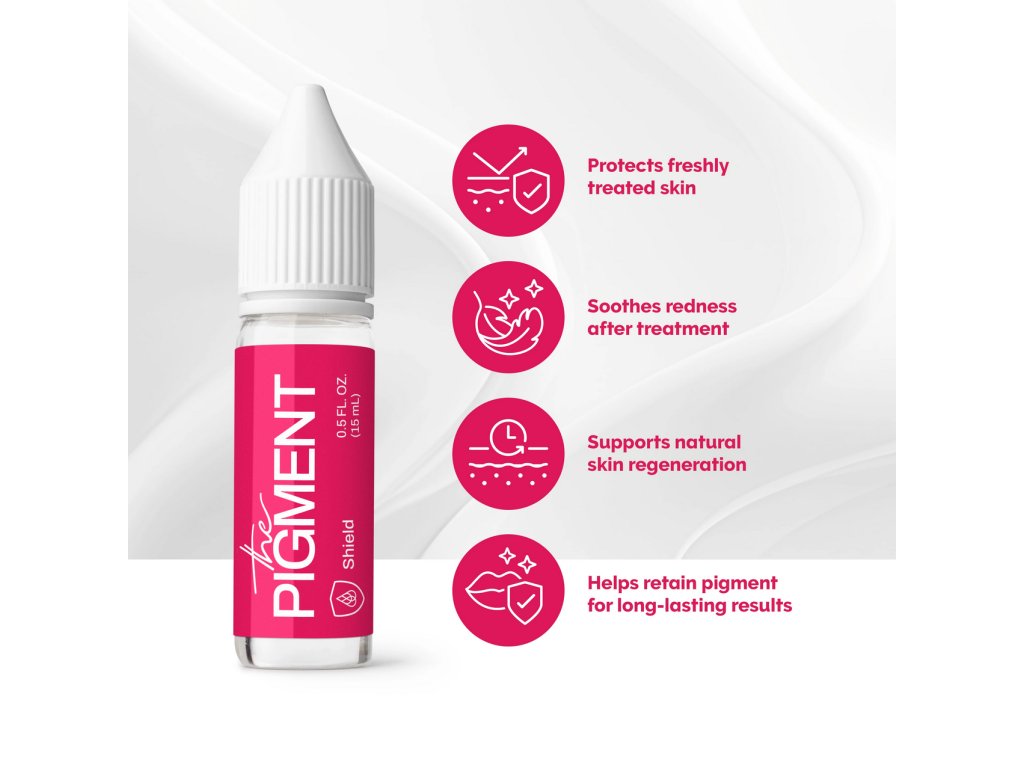 Shield ist ein speziell entwickeltes Produkt für die Nachpflege nach PMU und Microblading. Es bildet einen Schutzfilm, der das Pigment nach dem Eingriff schützt, Reizungen lindert und die natürliche Regeneration der Haut unterstützt.