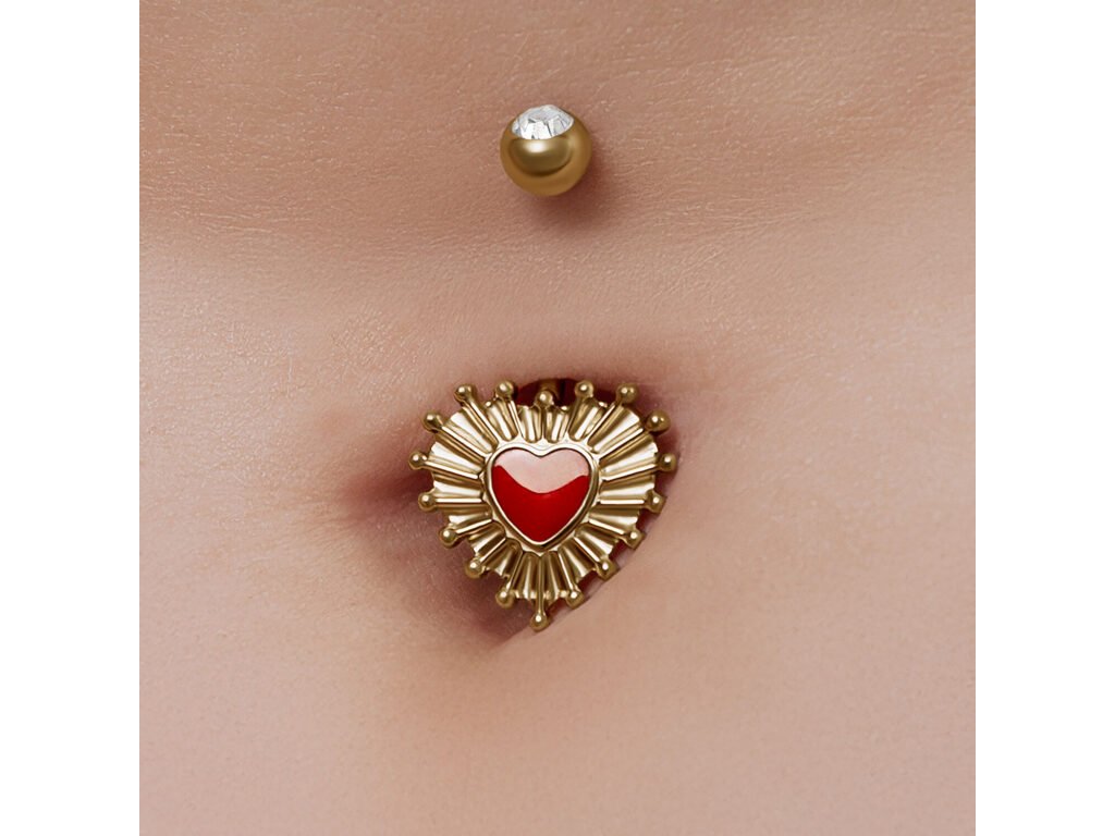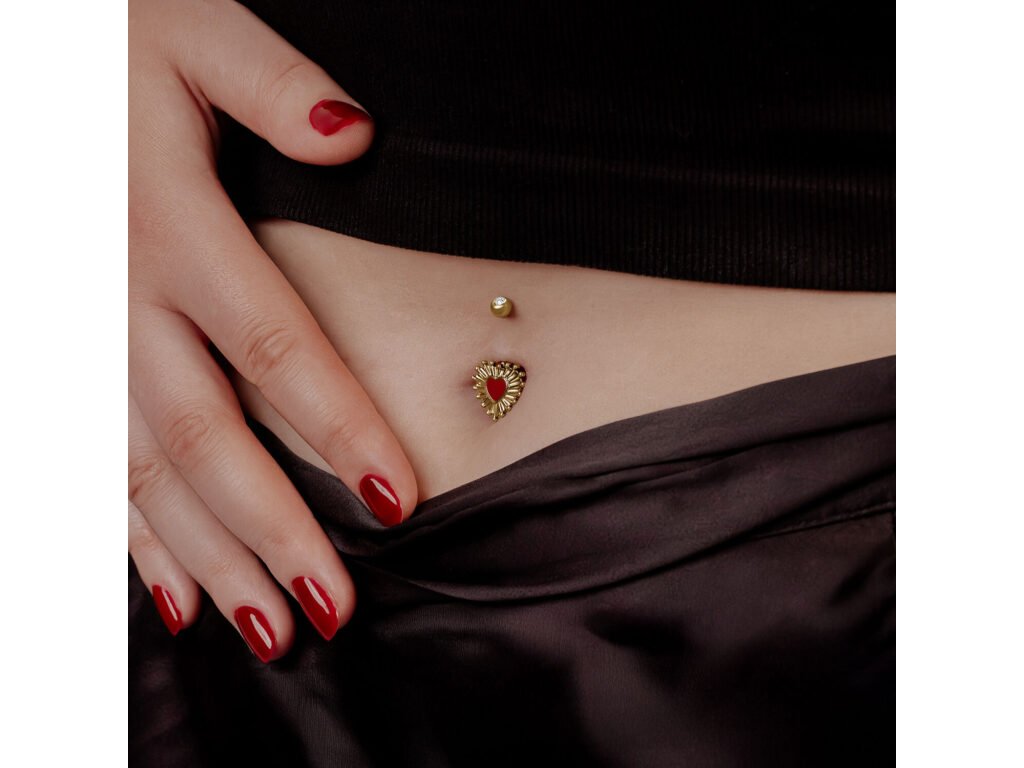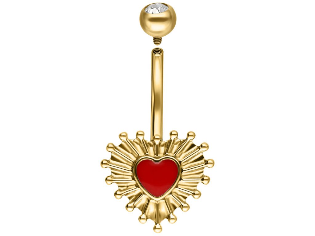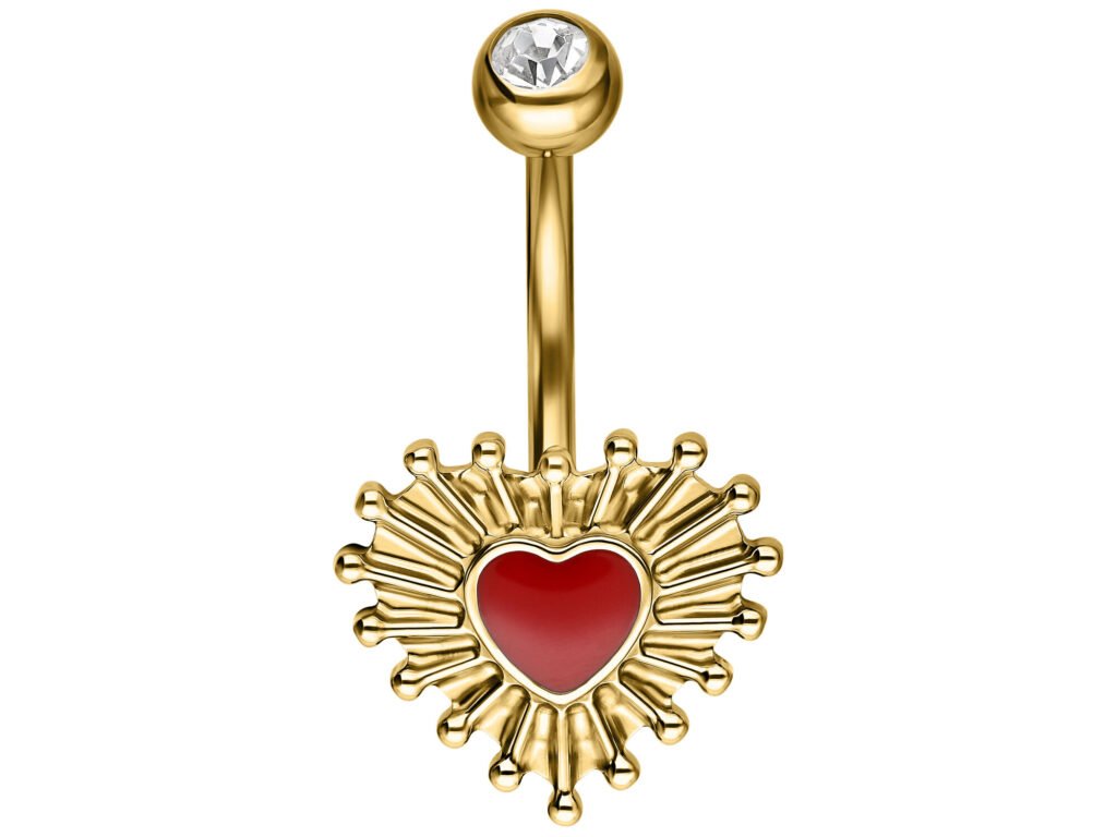 Das Wildcat Sacred Heart Bubble Enamel Bananabell ist ein unverwechselbares Bauchnabelpiercing mit einem ikonischen Herzmotiv. Das Design basiert auf der traditionellen Symbolik des Heiligen Herzens und kombiniert dekorative Emaille mit präzise bearbeitetem Titan. Der Schmuck hat eine ausgesprochen klare Optik und eignet sich für den täglichen Gebrauch sowie für die langfristige Nutzung.