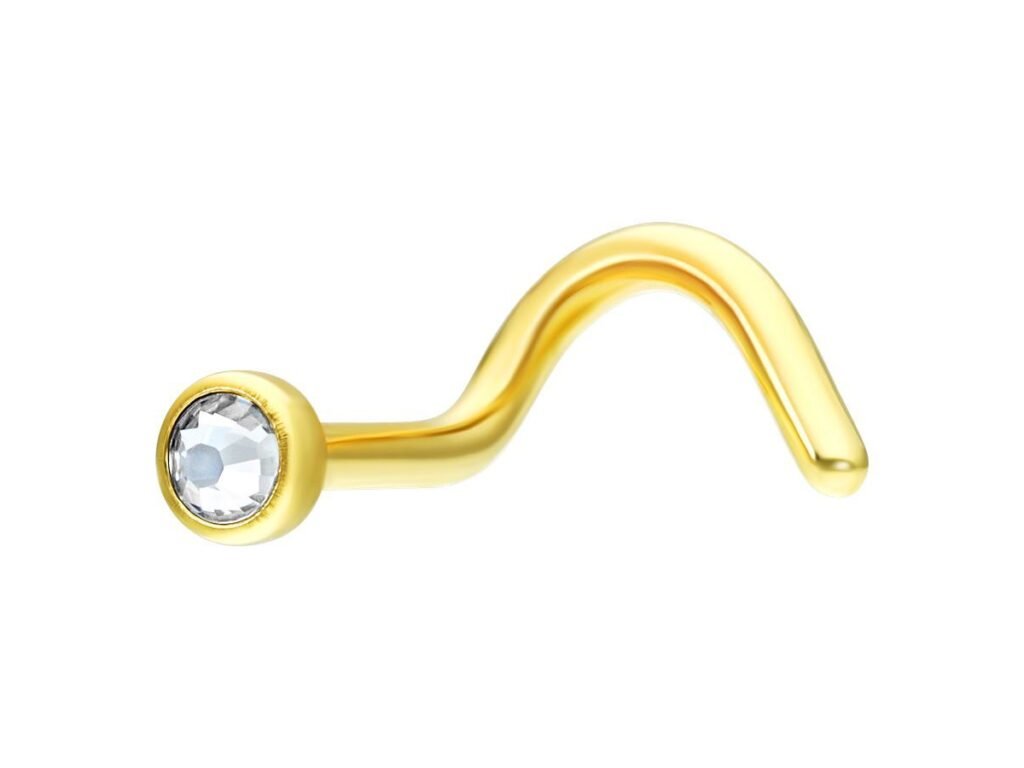 Wildkatzen-Nasenpiercing, gebogen, weißer Kristall, 1,0 mm